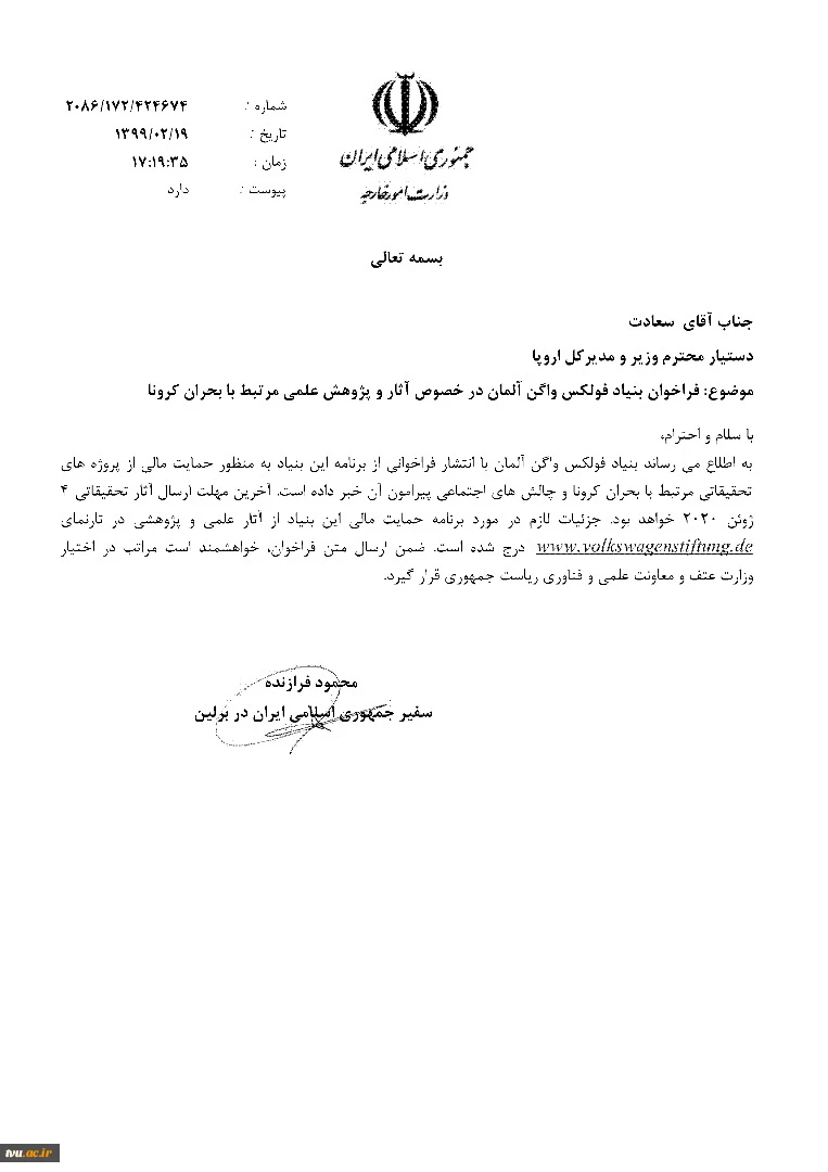 Do Score : Call of the Volkswagen Foundation of Germany for scientific works and research related to the Corona Crisis 3 Monday 18 May 2020 Hour 13:38