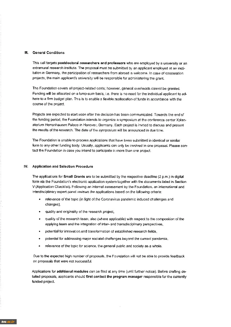 Do Score : Call of the Volkswagen Foundation of Germany for scientific works and research related to the Corona Crisis 5 Monday 18 May 2020 Hour 13:38