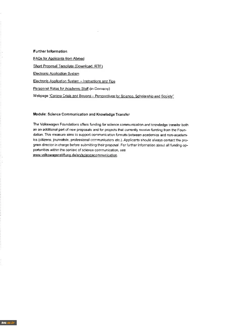 Do Score : Call of the Volkswagen Foundation of Germany for scientific works and research related to the Corona Crisis 7 Monday 18 May 2020 Hour 13:38
