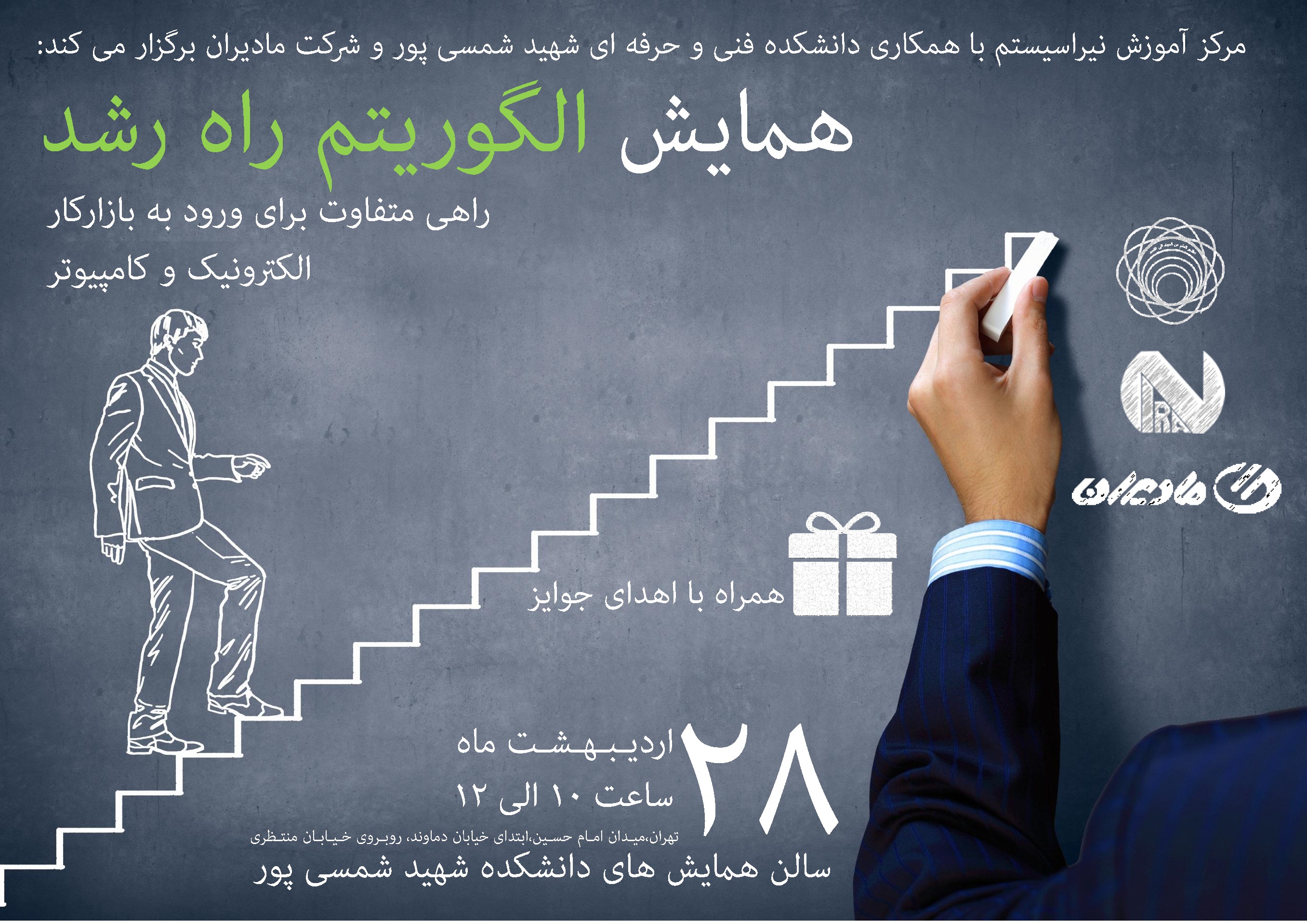 "همایش الگوریتم راه رشد" در دانشکده فنی و حرفه ای شهید شمسی پور با همکاری شرکت مادیران (تولید کننده محصولات X.vision) و مرکز آموزش نیراسیستم ، سه شنبه 28 اردیبهشت ماه در سالن همایش های دانشکده فنی و حرفه ای شهید شمسی پور برگزار خواهد شد .