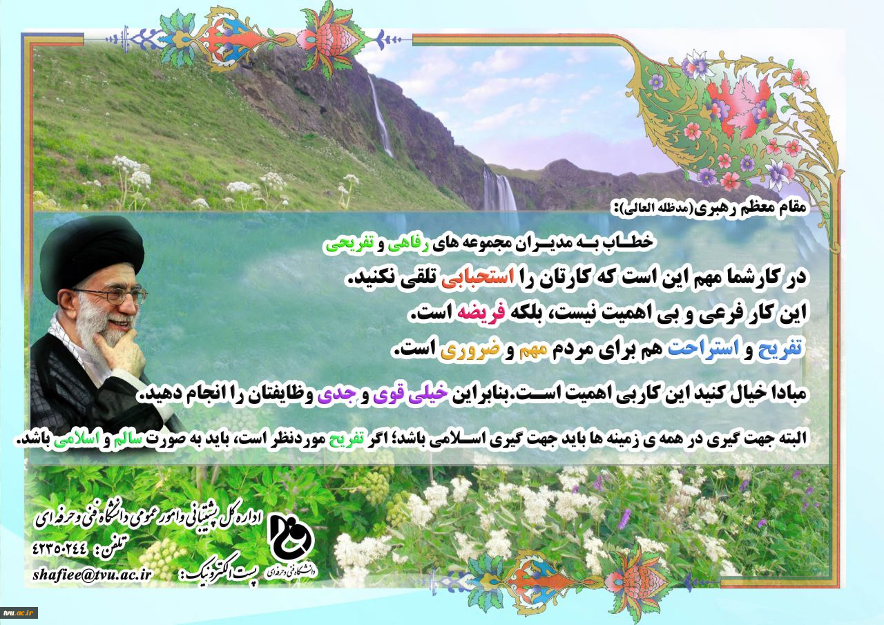 توصیه مقام معظم رهبری (مدظلله العالی) 2