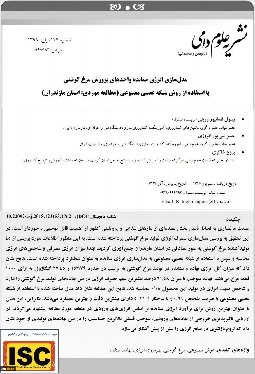 امتیاز دهید : چاپ مقاله علمی پژوهشی توسط رسول لقمانپور زرینی عضو هیات علمی آموزشکده کشاورزی ساری 2 یکشنبه 22 دی 1398 ساعت 12:12