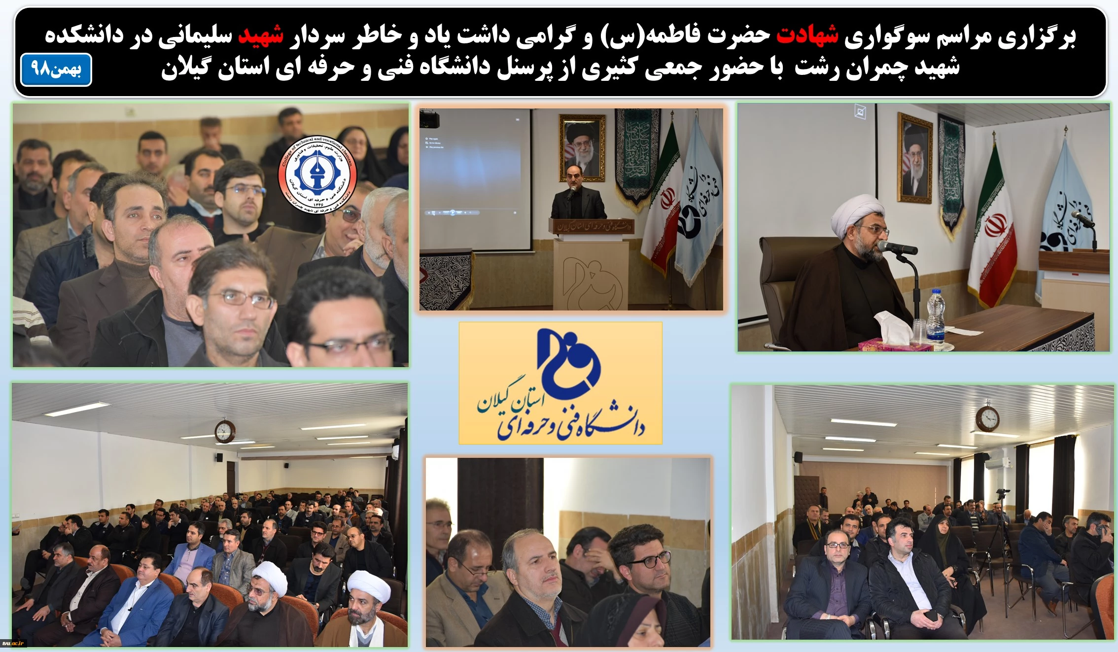 برگزاری مراسم سوگواری شهادت حضرت فاطمه(س) و گرامی داشت یاد و خاطر سردار شهید سلیمانی در دانشکده شهید چمران رشت با حضور جمع کثیری از پرسنل دانشگاه فنی و حرفه ای استان گیلان 2