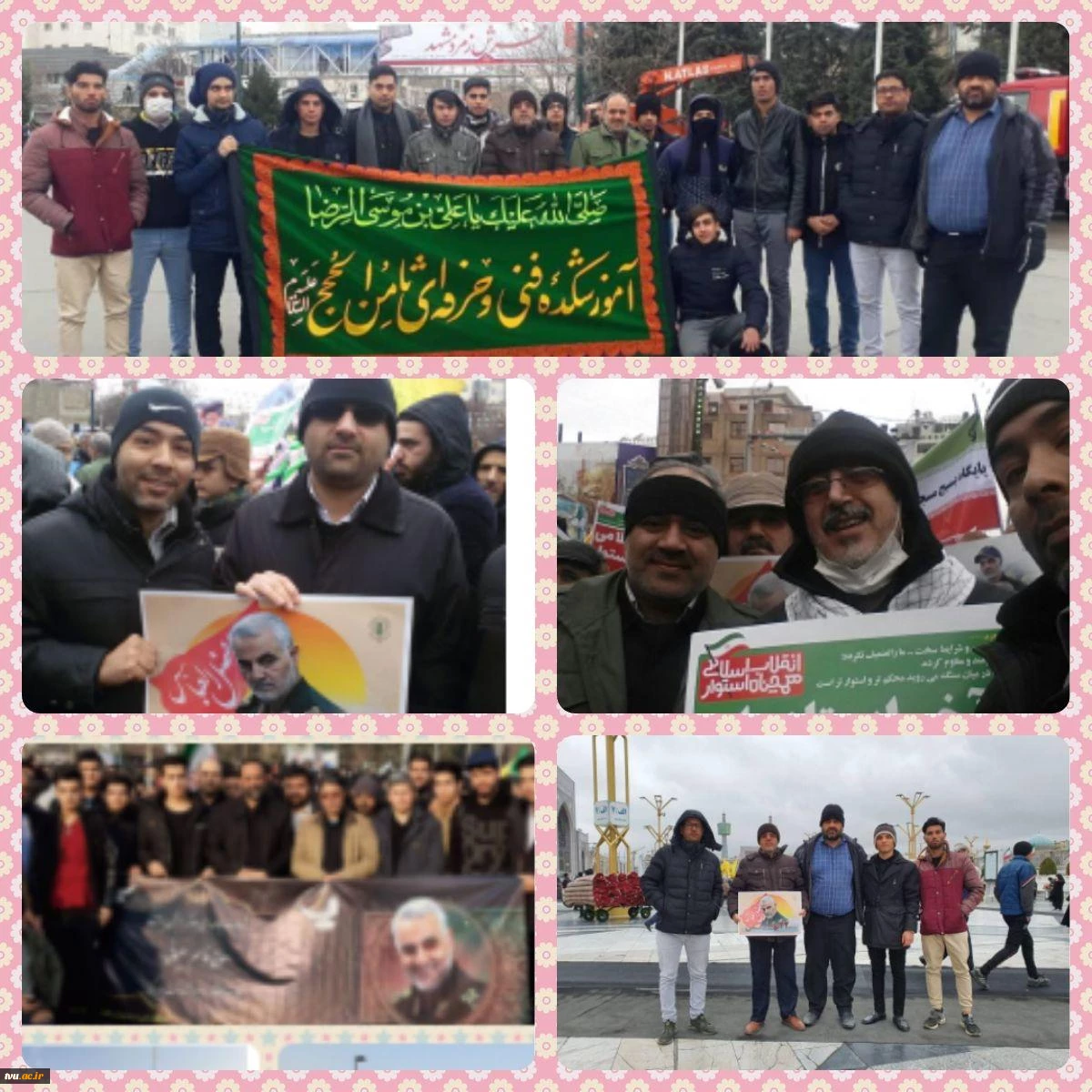 حضور پر شور کارکنان ، اساتید و دانشجویان دانشکده فنی و حرفه ای ثامن الحجج (ع) مشهد مقدس در راهپیمایی ۲۲ بهمن 2