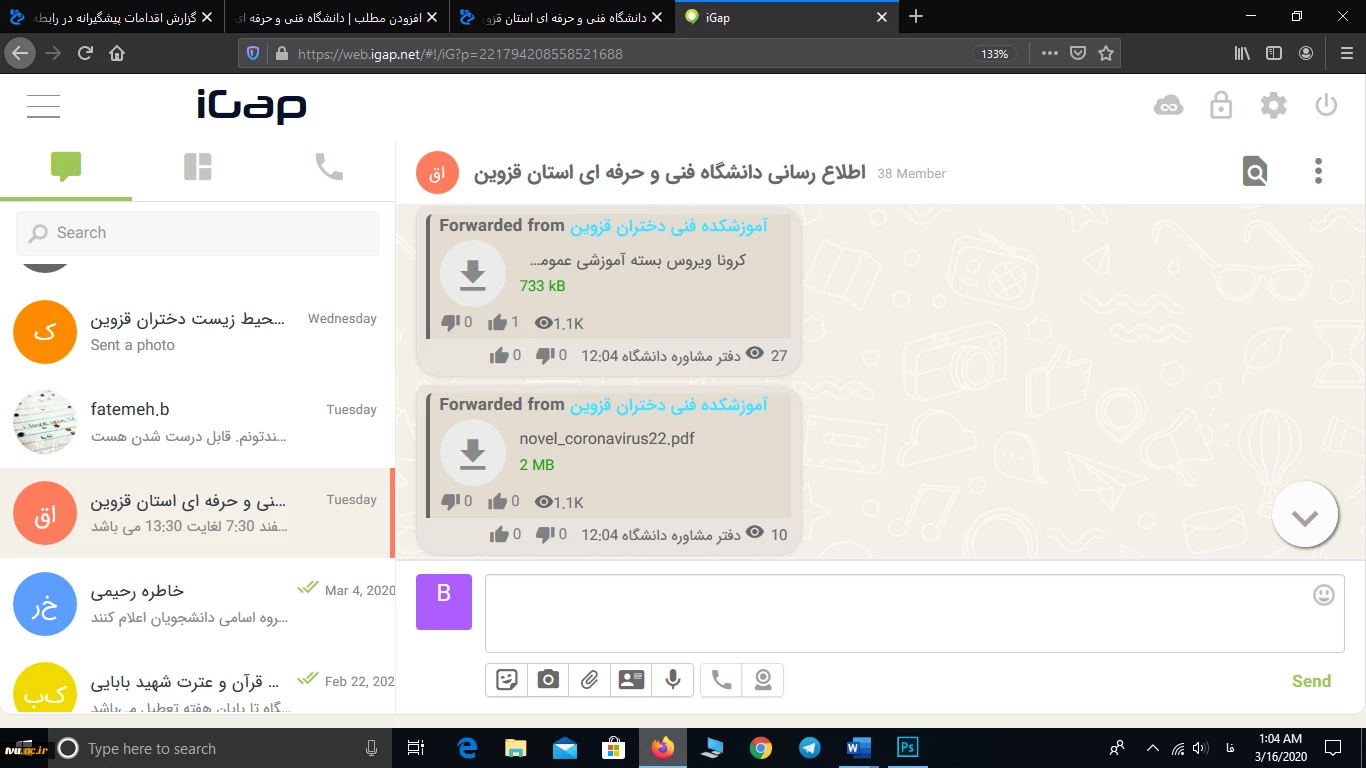 امتیاز دهید : گزارش اقدامات پیشگیرانه در رابطه با ویروس کرونا در آموزشکدههای فنی استان قزوین 7 یکشنبه 25 اسفند 1398 ساعت 1:20