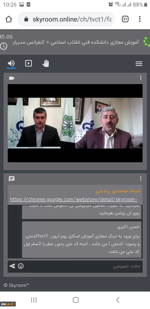برگزاری وبینار کاربردی با موضوع " آموزش آنلاین در بستر اسکای روم " با حضور دکتر کیانی معاون محترم آموزشی دانشگاه فنی و حرفه ای و کلیه اساتید رسمی و مدعو استان تهران به میزبانی دانشکده انقلاب اسلامی تهران  2