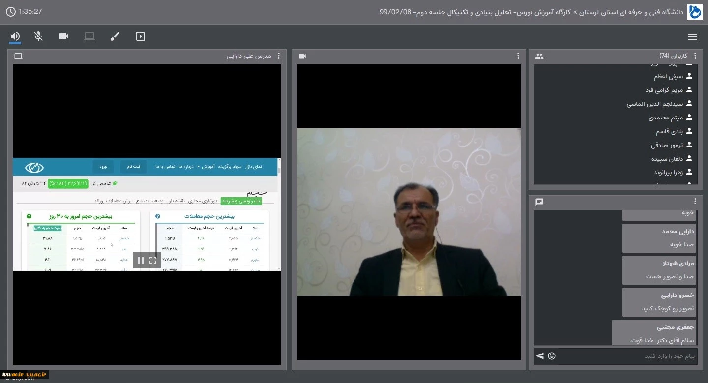 امتیاز دهید : برگزاری جلسه وبینار آموزش تکنیکال و بنیادی بورس بصورت مجازی توسط دانشگاهفنی و حرفه ای استان لرستان 4 پنجشنبه 11 اردیبهشت 1399 ساعت 18:09
