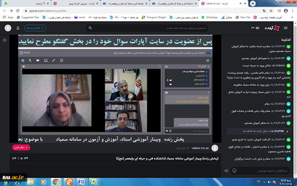 امتیاز دهید : وبینار " آموزش و آزمون در سمیاد" ویژه اساتید کل کشور در هفته آموزش به میزبانی دانشکده فنی و حرفه ای دختران تهران ولی عصر(عج) برگزار شد. 3 شنبه 20 اردیبهشت 1399 ساعت 12:43