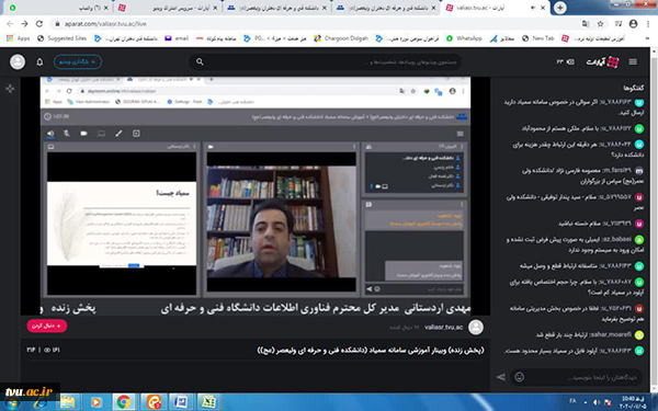 امتیاز دهید : وبینار " آموزش و آزمون در سمیاد" ویژه اساتید کل کشور در هفته آموزش به میزبانی دانشکده فنی و حرفه ای دختران تهران ولی عصر(عج) برگزار شد. 4 شنبه 20 اردیبهشت 1399 ساعت 12:43
