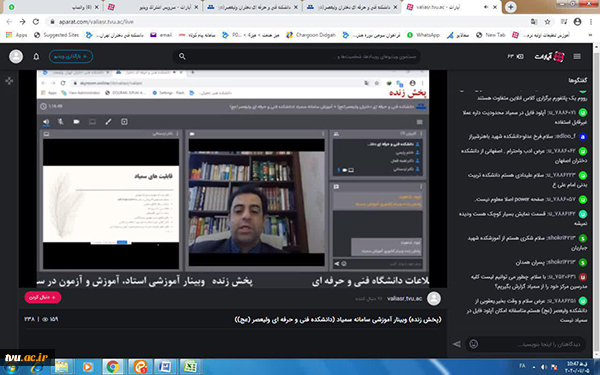 امتیاز دهید : وبینار " آموزش و آزمون در سمیاد" ویژه اساتید کل کشور در هفته آموزش به میزبانی دانشکده فنی و حرفه ای دختران تهران ولی عصر(عج) برگزار شد. 5 شنبه 20 اردیبهشت 1399 ساعت 12:43