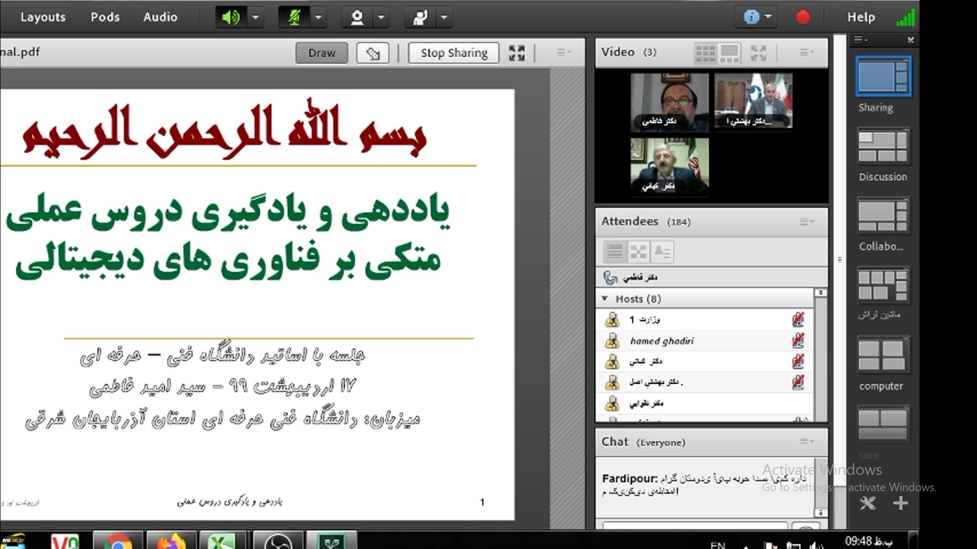 امتیاز دهید : با حضور نزدیک به 800 نفر از استادان و دانشجویان دانشگاههای سراسر کشور، وبینارآموزشی " آموزش الکترونیکی دروس عملی " به میزبانی دانشگاه فنی و حرفه ای استان آذربایجان شرقی برگزار گردید. 3 شنبه 20 اردیبهشت 1399 ساعت 13:57