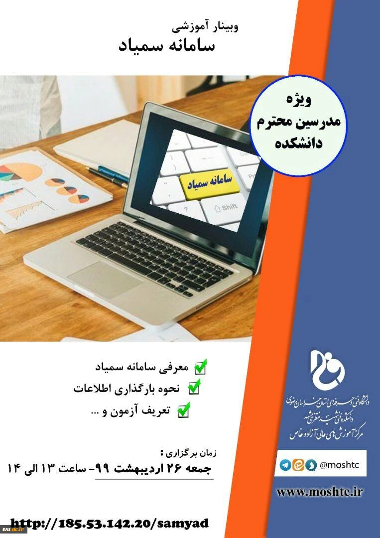 امتیاز دهید : وبینارآموزشی سمیاد برای اساتید رسمی و حق الندریس دانشکده فنی شهید منتظری 2 جمعه 26 اردیبهشت 1399 ساعت 15:35