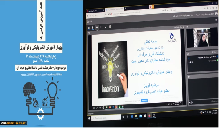 امتیاز دهید : وبینارهای برگزار شده به مناسبت گرامیداشت هفته آموزش در آموزشکده دکتر معین رشت 3 چهارشنبه 31 اردیبهشت 1399 ساعت 12:41