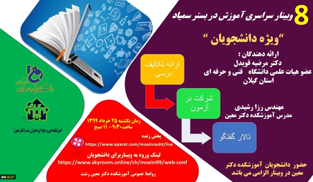 امتیاز دهید : وبینار سراسری آموزش در بستر سمیاد با محوریت برگزاری آزمون .ارائه تکالیف درسی ،تالار گفتگو ویژه دانشجویان و اساتید 3 شنبه 24 خرداد 1399 ساعت 12:01