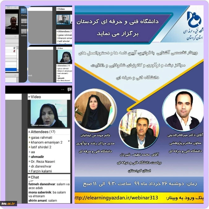 امتیاز دهید : معاونت محترم پژوهشی دانشگاه فنی و حرفه ای با همکاری دانشگاه فنی و حرفه ای استان کردستان: اولین وبینار تخصصی آشنایی با قوانین و آیین نامه های مراکز رشد و نوآوری و کانون های شکوفایی و خلاقیت 2 سهشنبه 27 خرداد 1399 ساعت 8:48