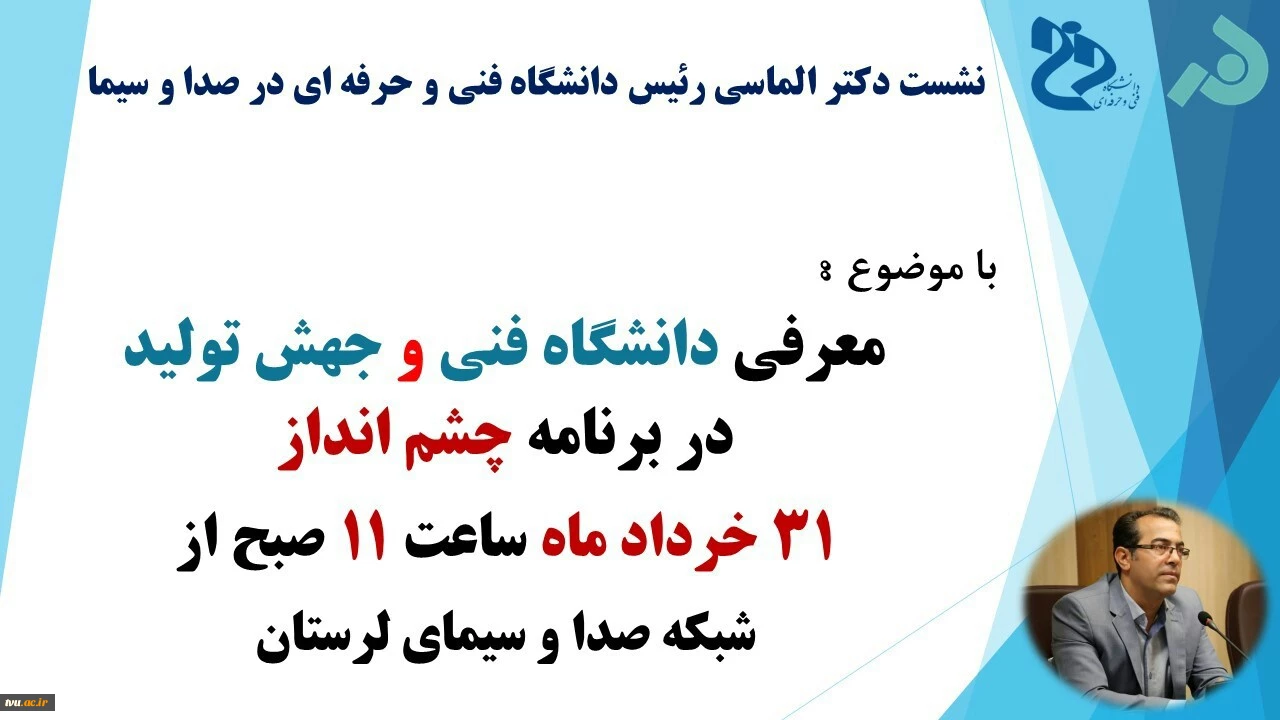 امتیاز دهید : نشست دکتر الماسی رییس دانشگاه فنی و حرفه ای استان لرستان در صدا و سیمای مرکز لرستان 3 شنبه 31 خرداد 1399 ساعت 9:23
