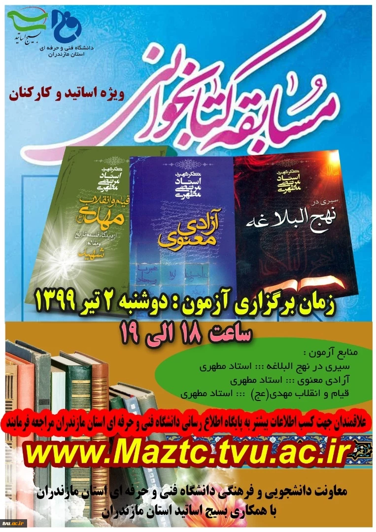 امتیاز دهید : مسابقه بزرگ کتاب خوانی ویژه اساتید و کارکنان دانشگاه فنی و حرفه ای برگزار شد 2 جمعه 6 تیر 1399 ساعت 11:43