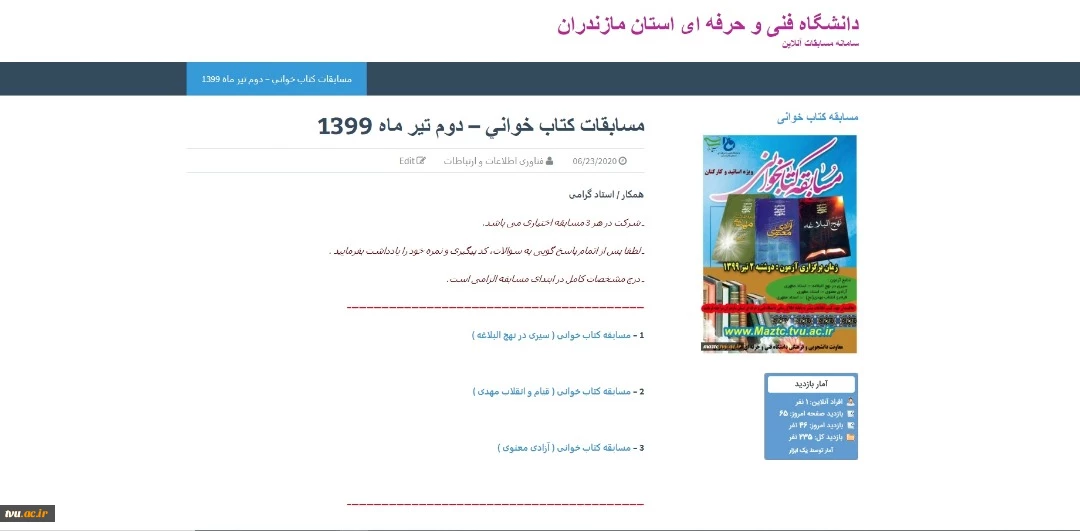 امتیاز دهید : مسابقه بزرگ کتاب خوانی ویژه اساتید و کارکنان دانشگاه فنی و حرفه ای برگزار شد 3 جمعه 6 تیر 1399 ساعت 11:43