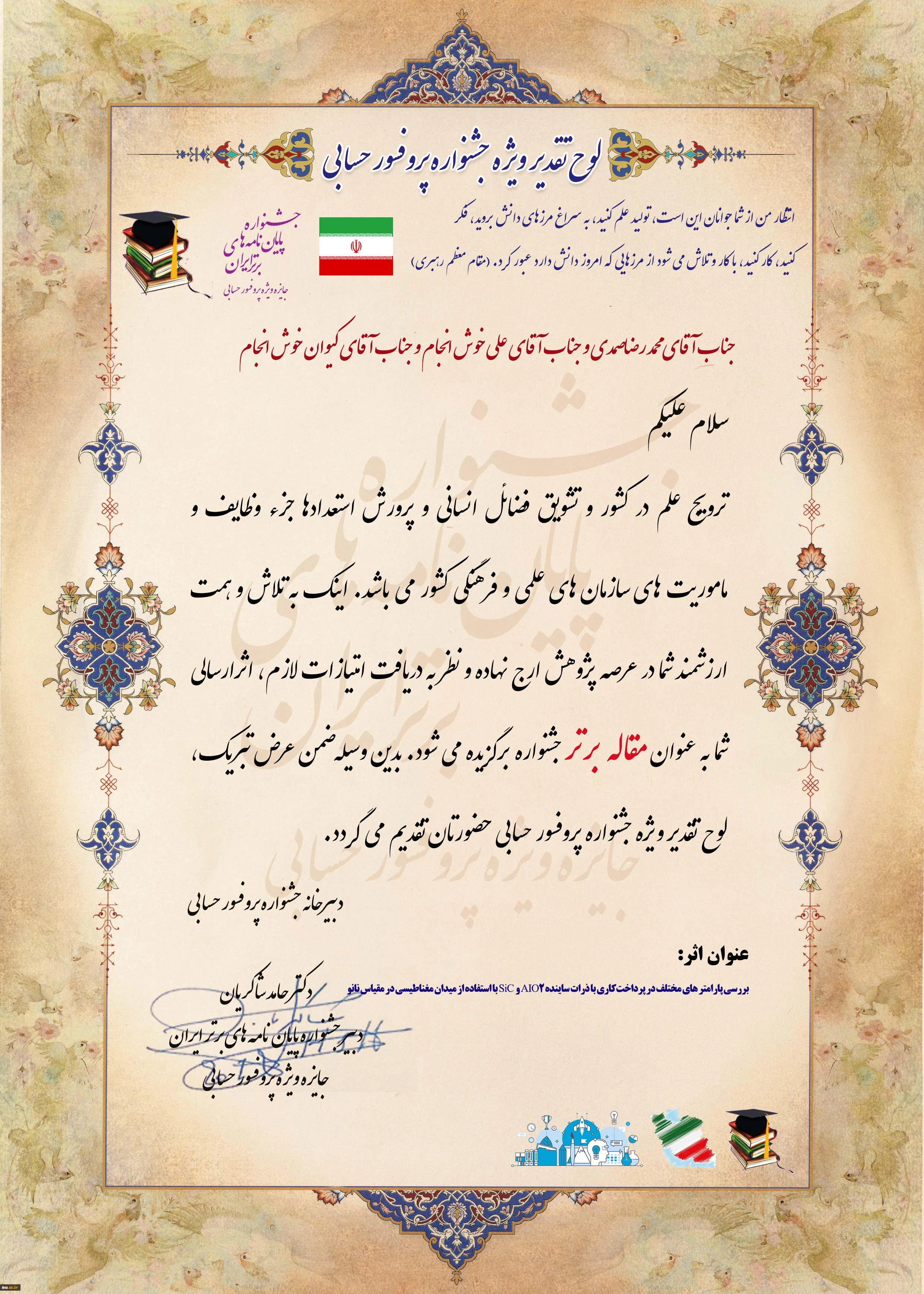 امتیاز دهید : کسب عنوان پژوهشگر برتر و نیزمقاله برتر از سومین دوره ی جشنواره پروفسور حسابی توسط آقای مهندس محمد رضا صمدی عضو هیات علمی آموزشکده فنی و حرفه ای پسران بروجرد 4 دوشنبه 16 تیر 1399 ساعت 11:54