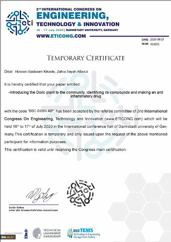 افتخار آفرینی دانشجویان دانشکده فنی و حرفه ای دختران تهران ولی عصر(عج) در سومین دوره جشنواره پروفسور حسابی 2