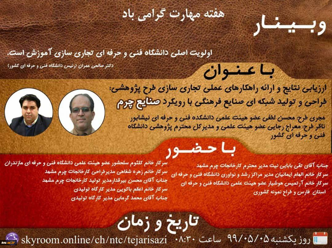 امتیاز دهید : صنایع خلاق فرهنگی با مدل نوین کسب و کار در مسیر تجاری سازی با تایید متخصصان صنعت و دانشگاه 2 سهشنبه 7 مرداد 1399 ساعت 10:42