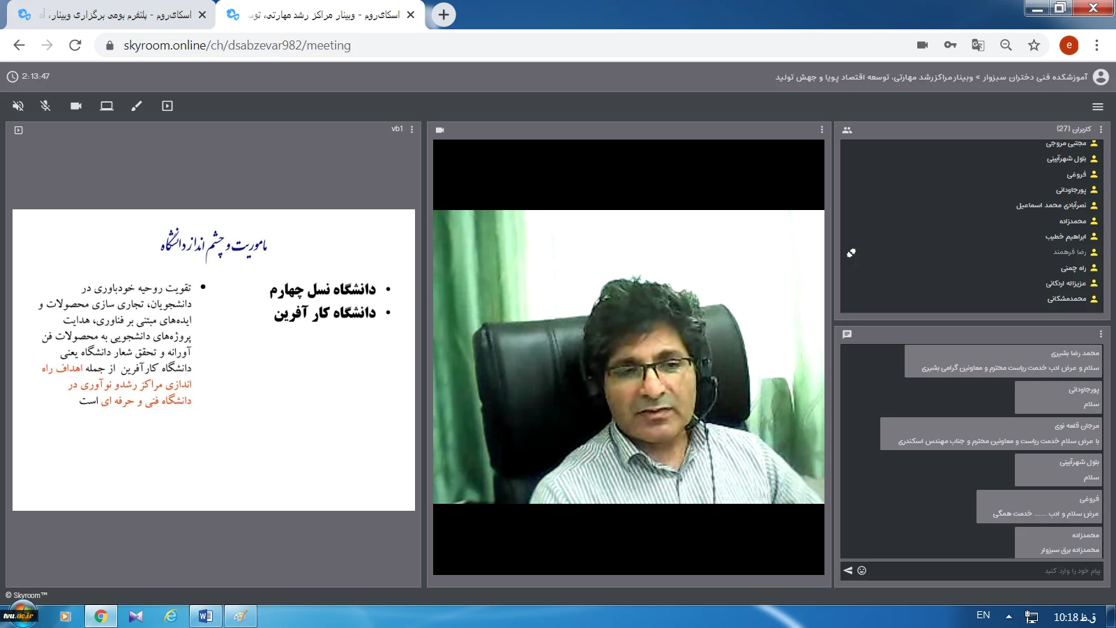 برگزاری وبینار با موضوع  "مراکز رشد مهارتی ،توسعه اقتصاد پایدار و جهش تولید "             2