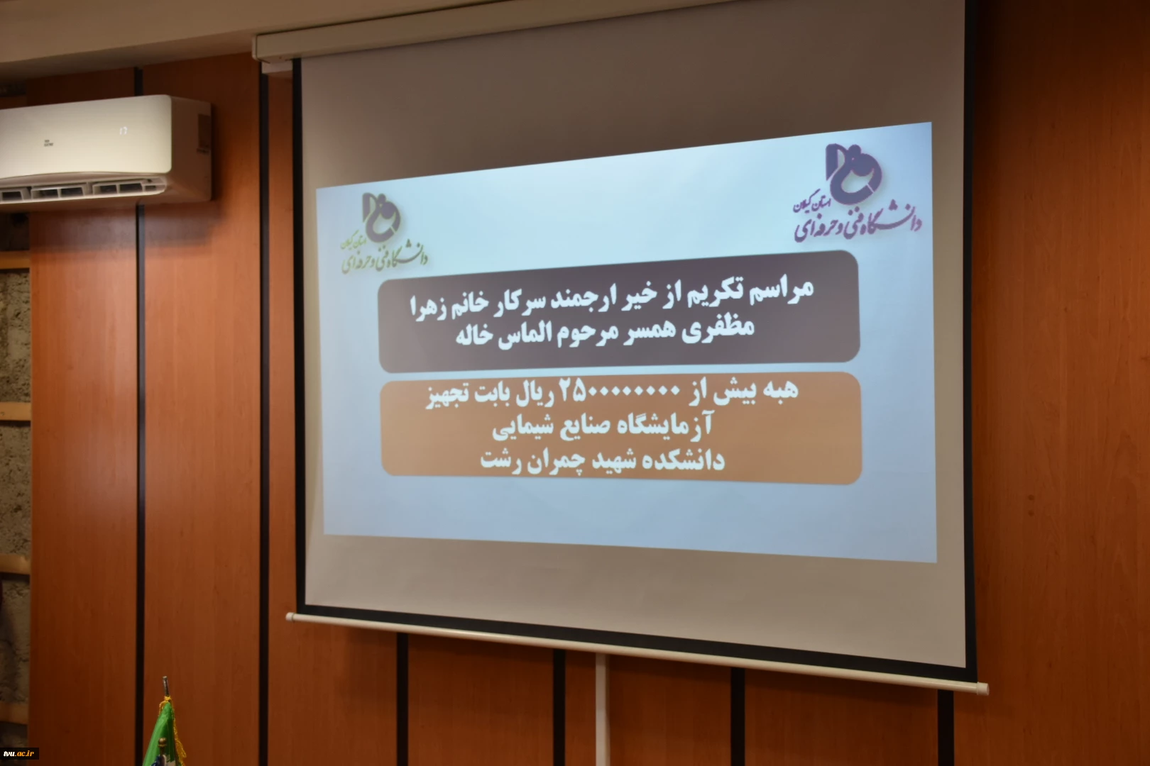 امتیاز دهید : تجلیل از خیر نیک اندیش سرکار خانم زهرا مظفری و خانواده محترم مرحوم الماس خاله بابت هبه بیش از 250 میلیون تومانی به دانشگاه فنی و حرفه ای استان گیلان 2 دوشنبه 13 مرداد 1399 ساعت 9:19