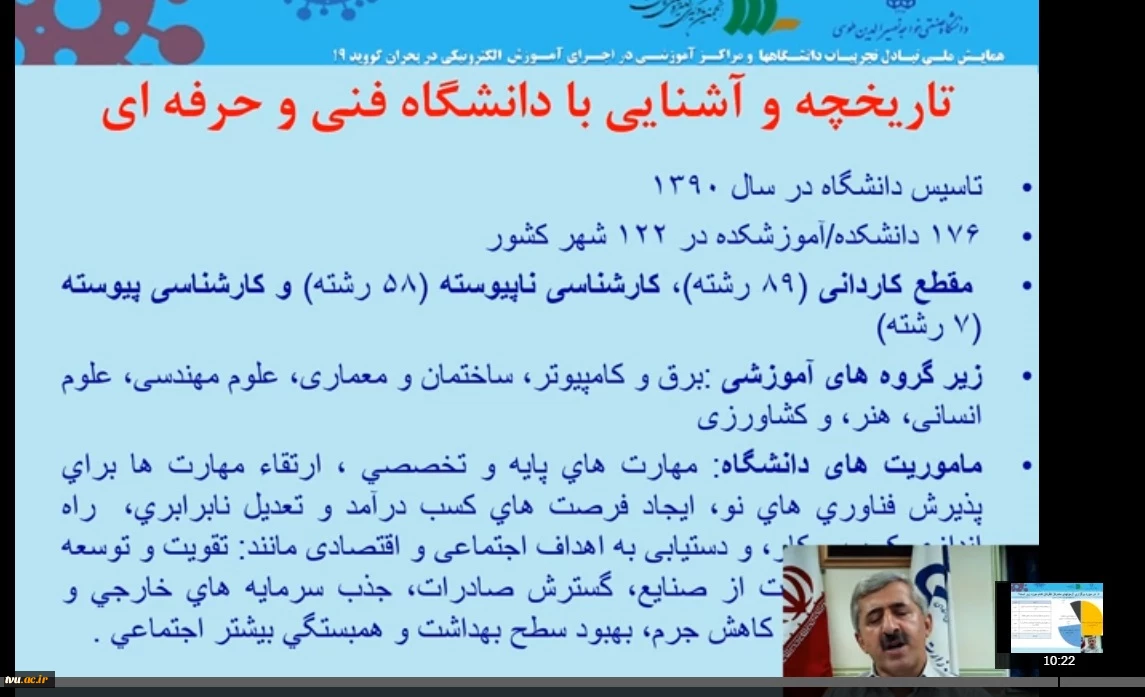 امتیاز دهید : برگزاری وبینار توسعه کیفی، یادگیری عمیق و ارزشیابی اجرای دوره ها 3 چهارشنبه 22 مرداد 1399 ساعت 14:03
