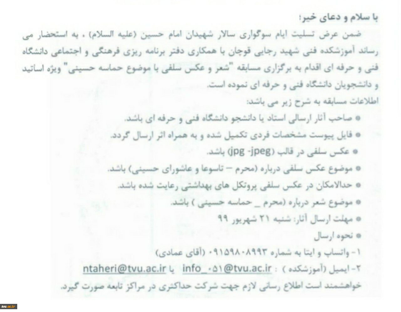امتیاز دهید : دانشکده فنی و حرفه ای شهید رجایی قوچان با همکاری دفتر برنامه ریزی و فرهنگی دانشگاه فنی و حرفه ای برگزار می کند؛ 3 چهارشنبه 5 شهریور 1399 ساعت 23:29