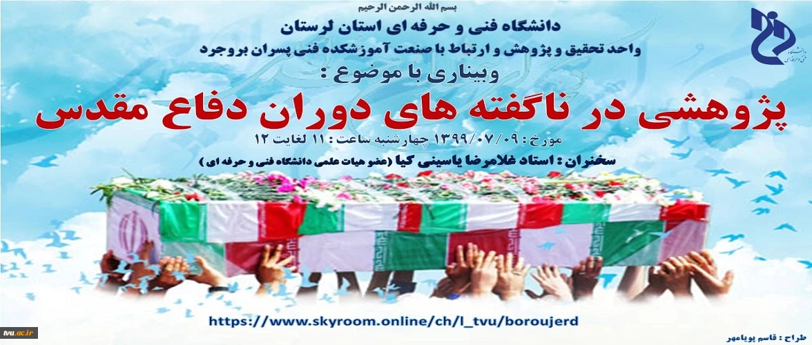 امتیاز دهید : برگزاری وبینار دانشگاه فنی و حرفه ای استان لرستان آموزشکده فنی و حرفه ای پسران بروجرد به مناسبت هفته دفاع مقدس با محوریت " پژوهشی در ناگفته های دوران دفاع مقدس " 2 سهشنبه 8 مهر 1399 ساعت 11:29
