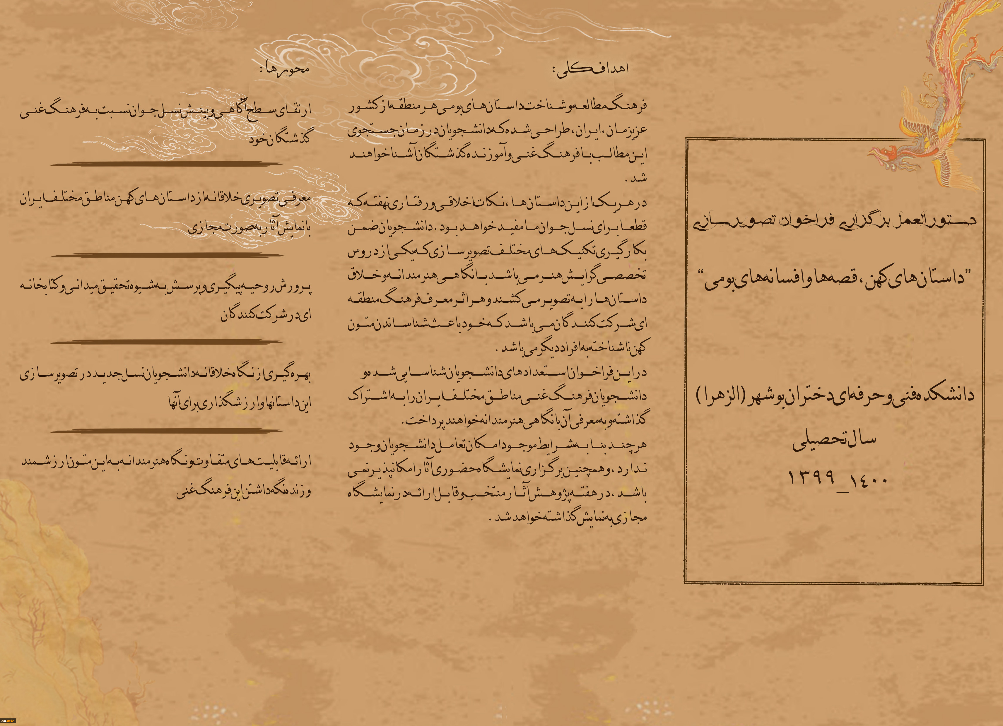 امتیاز دهید : فراخوان مسابقه تصویر سازی داستان های کهن، قصه ها و افسانه های بومی 3 سهشنبه 15 مهر 1399 ساعت 8:51