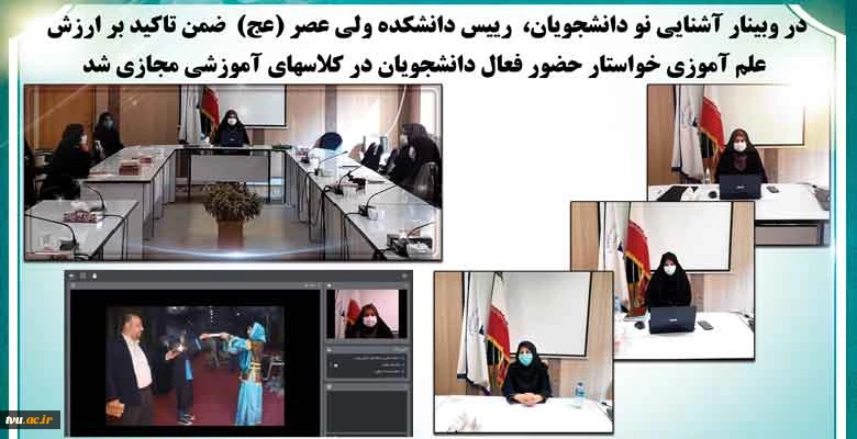 امتیاز دهید : در وبینار آشنایی نو دانشجویان، رییس دانشکده ولی عصر(عج)ضمن تاکید بر ارزش علم آموزی خواستار حضور فعال دانشجویان در کلاسهای آموزشی مجازی شد. 2 شنبه 24 آبان 1399 ساعت 11:03