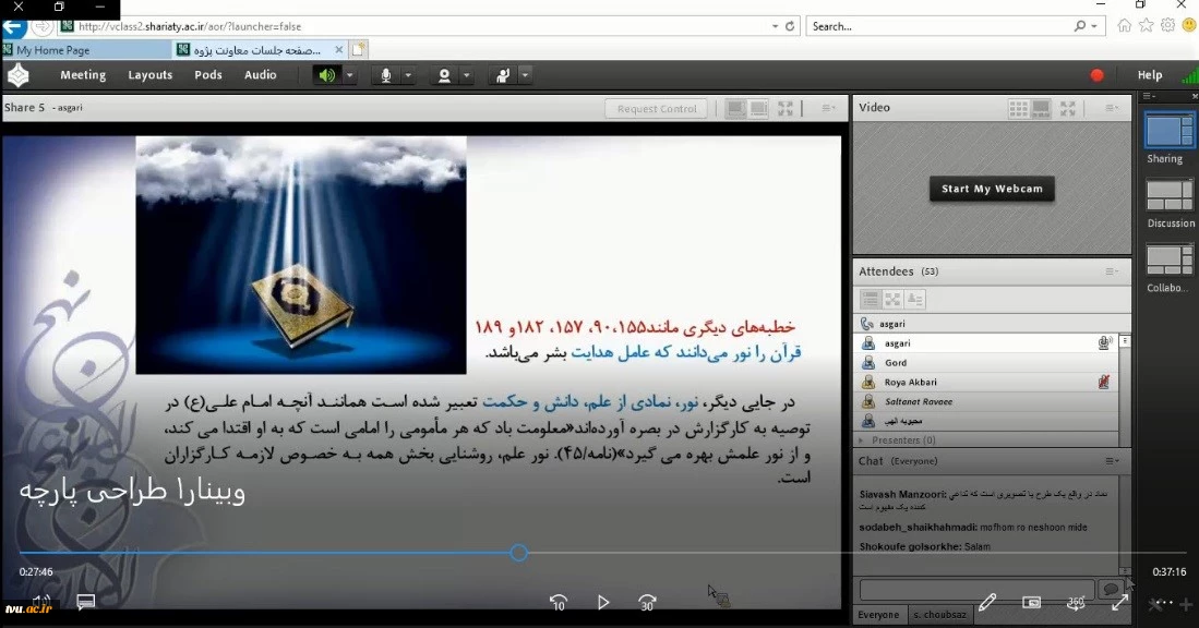 امتیاز دهید : برگزاری همایش آنلاین رنگ و هنر از منظر حضرت علی(ع) در نهج البلاغه به مناسبت هفته پژوهش با همکاری گروه طراحی پارچه و لباس دانشکده شریعتی 4 شنبه 24 آبان 1399 ساعت 12:52