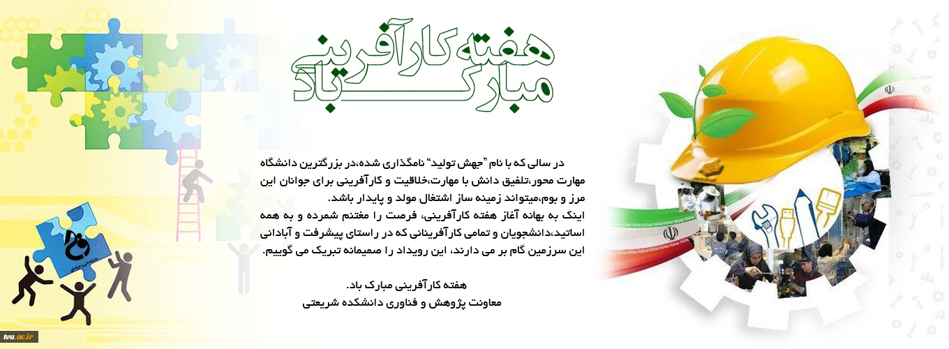 پیام تبریک معاونت پژوهش و فناوری دانشکده فنی و حرفه ای دکتر شریعتی به مناسبت هفته کارآفرینی 2
