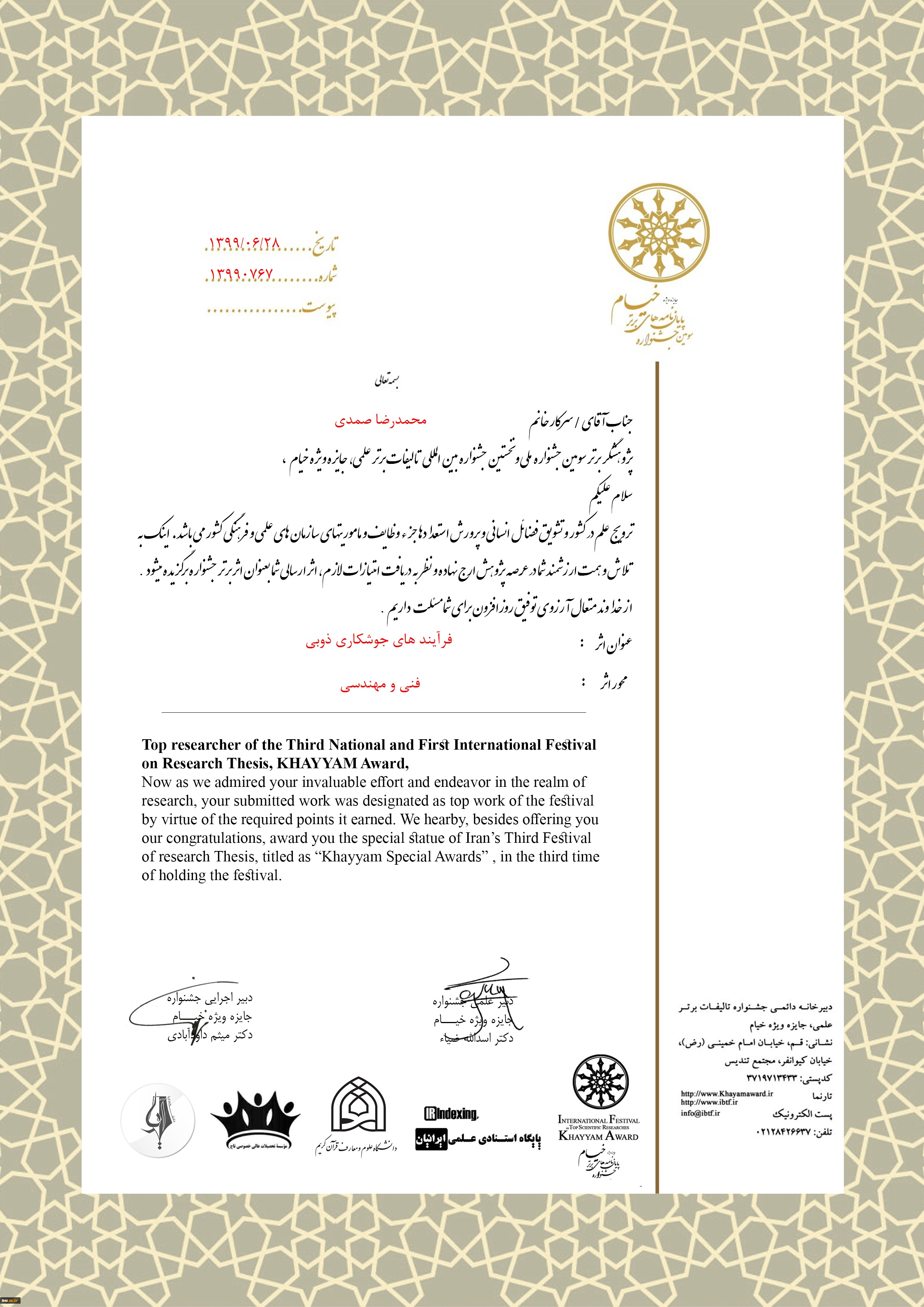 امتیاز دهید : افتخاری دیگر برای آموزشکده فنی پسران بروجرد و دانشگاه فنی و حرفه ای استان لرستان توسط آقای مهندس محمدرضاصمدی عضوهیات علمی دانشگاه، در نخستین جشنواره بین المللی تالیفات برتر علمی خیام 2 یکشنبه 2 آذر 1399 ساعت 14:19