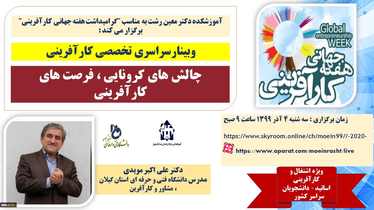 امتیاز دهید : گرامی داشت هفته جهانی کارآفرینی (GEW) در اموزشکده دکتر معین رشت 2 دوشنبه 3 آذر 1399 ساعت 11:17
