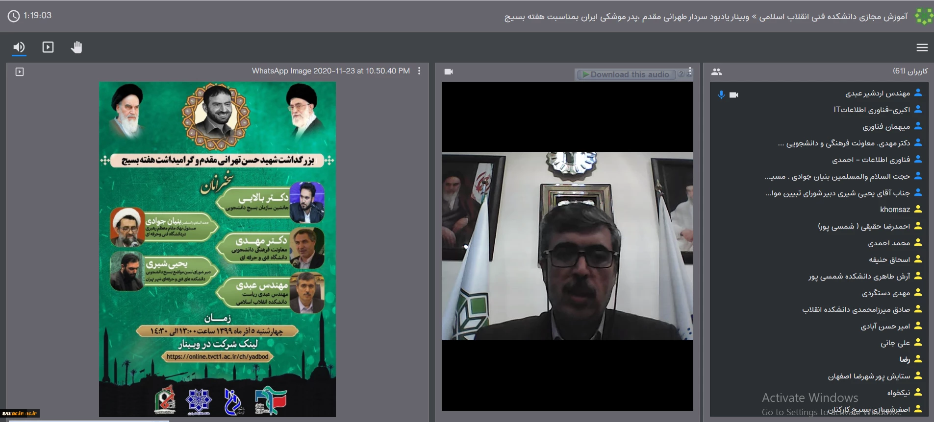 امتیاز دهید : همایش مجازی بزرگداشت شهید سردار تهرانی مقدم و سالروز تشکیل بسیج مستضعفین 3 شنبه 8 آذر 1399 ساعت 12:07