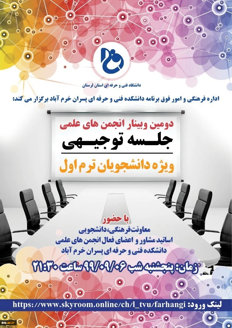 امتیاز دهید : دومین وبینار انجمن های علمی، ویژه دانشجویان ترم اول دانشکده فنی و حرفه ای پسران خرم آباد 2 یکشنبه 9 آذر 1399 ساعت 9:06