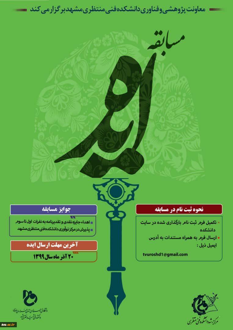 مسابقه "ایده" در دانشکده فنی شهید منتظری مشهد ((نفرات اول تا سوم جوایز نقدی و پذیرش در مراکز شکوفایی)) خواهند داشت 2
