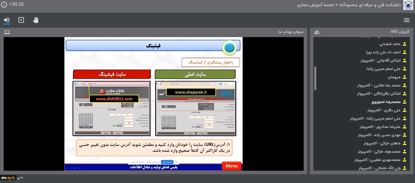 امتیاز دهید : وبینار علمی آموزشی با موضوع "آشنایی با آسیب ها و خطرات فضای مجازی "در دانشکده فنی و حرفه ای محمودآباد برگزار شد 7 سهشنبه 11 آذر 1399 ساعت 13:06