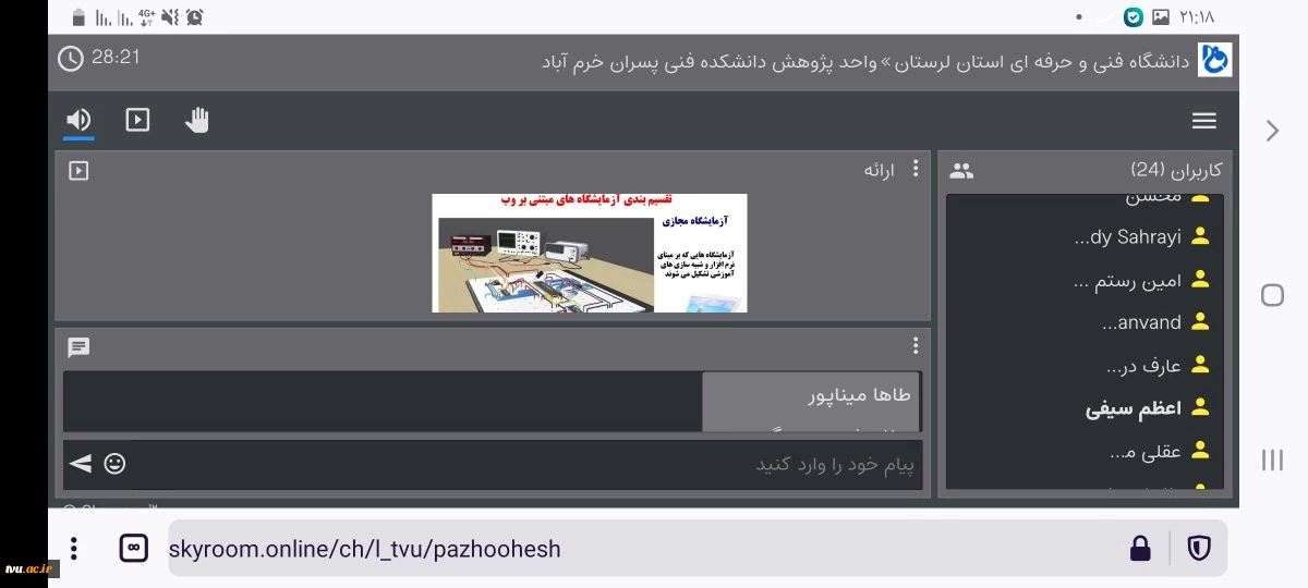 امتیاز دهید : وبینار آموزشی مدیریت و اجرای دروس عملی و کارگاهی با استفاده از نرم افزارهای شبیه سازی دانشکده فنی و حرفه ای پسران خرم آباد 3 جمعه 14 آذر 1399 ساعت 12:29