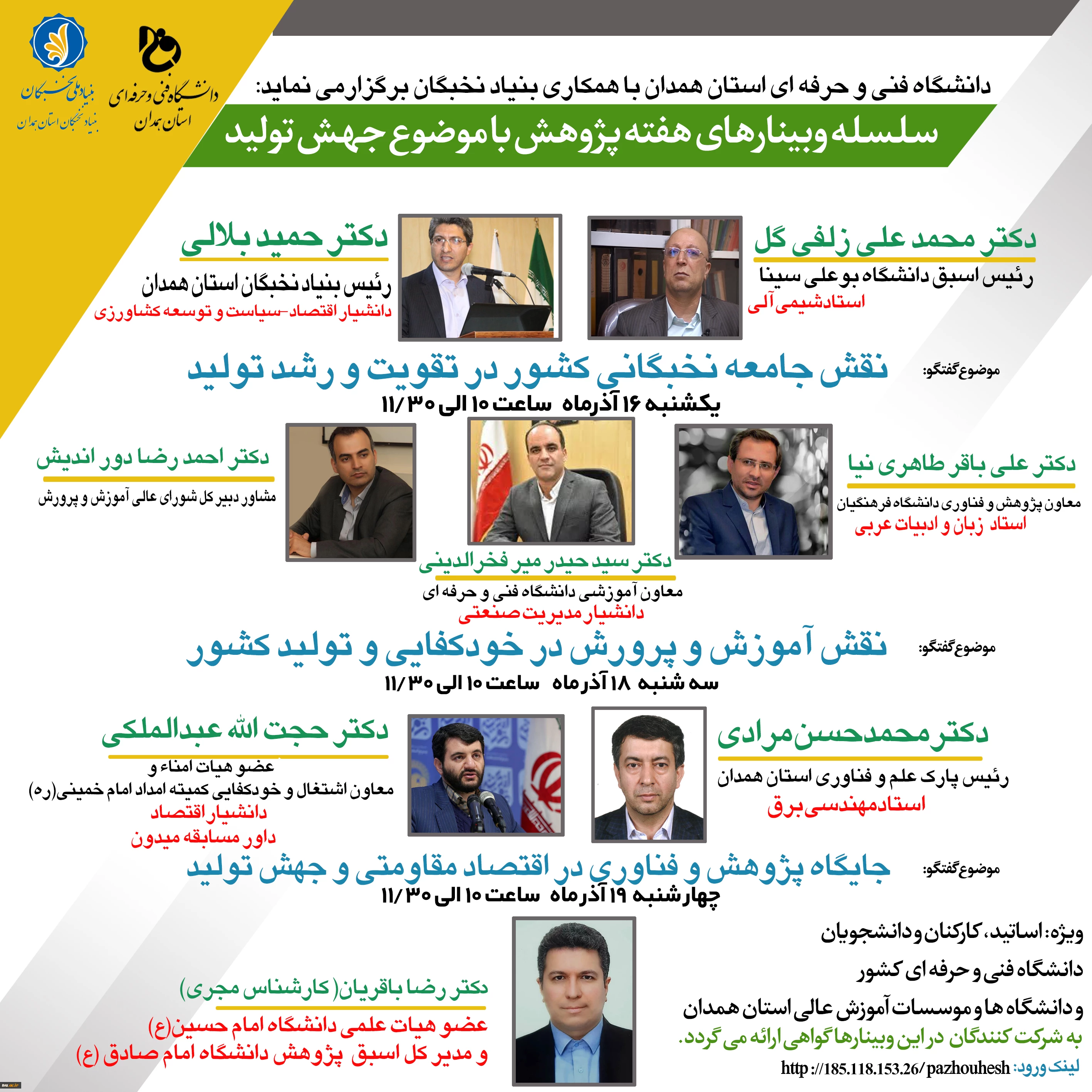 امتیاز دهید : سلسله وبینارهای هفته پژوهش دانشگاه فنی و حرفه ای استان همدان 2 یکشنبه 16 آذر 1399 ساعت 12:57