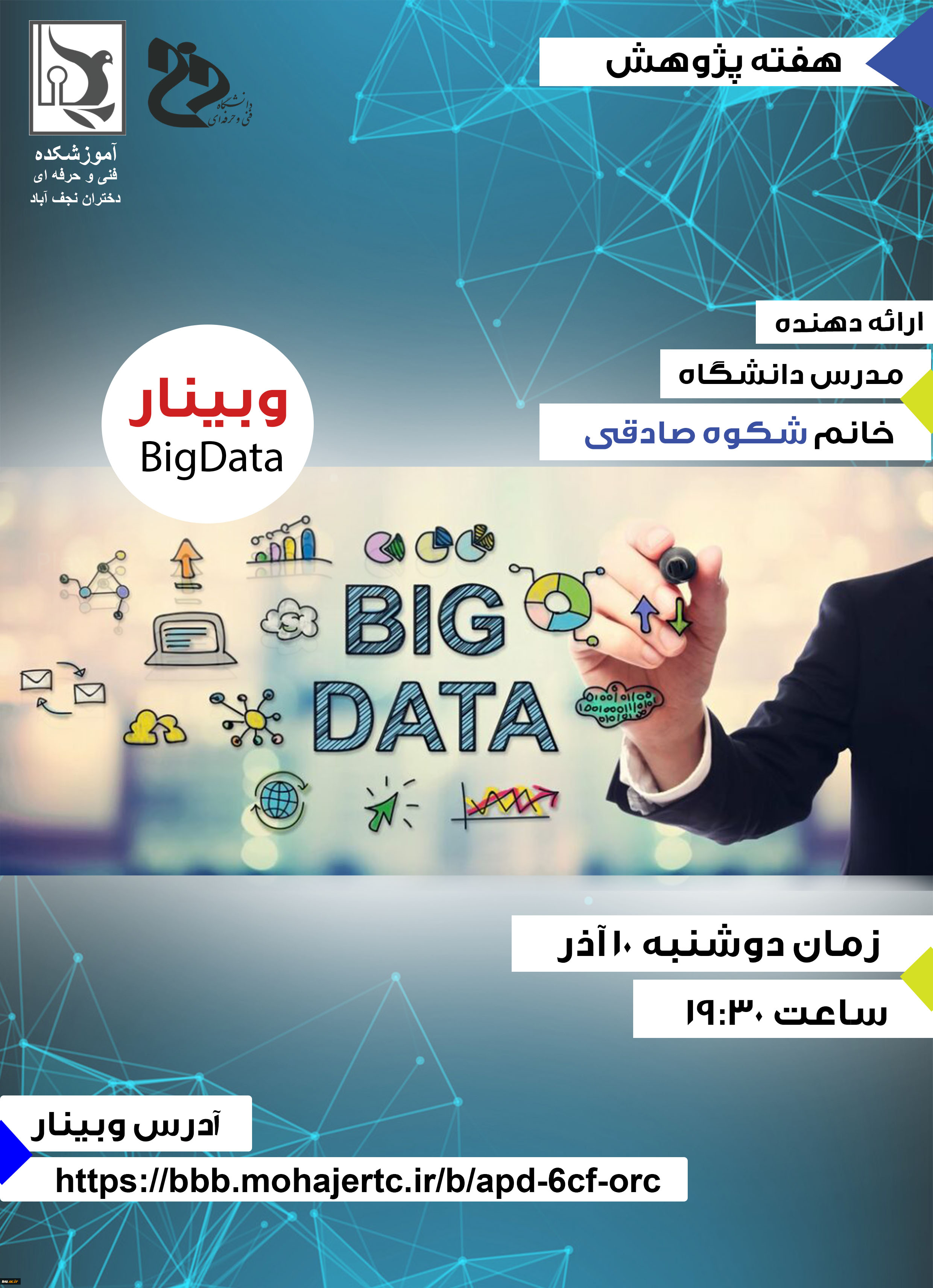 امتیاز دهید : بمناسبت هفته پژوهش وبینارهایی در آموزشکده فنی وحرفه ای دختران نجف اباد برگزار می گردد 16 سهشنبه 18 آذر 1399 ساعت 11:20