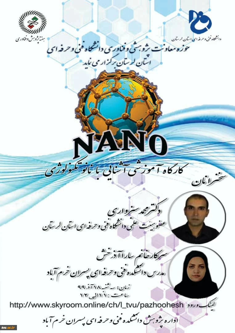 امتیاز دهید : کارگاه آموزشی آشنایی با نانو تکنولوژی وبینار آموزشی آشنایی با نانو تکنولوژی، دانشگاه فنی و حرفه ای استان لرستان 2 چهارشنبه 19 آذر 1399 ساعت 0:05
