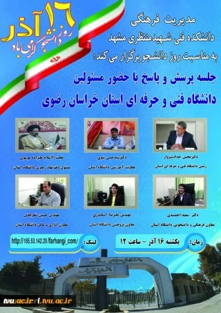 به مناسبت ۱۶ آذر بزرگداشت روز دانشجو جلسه پرسش و پاسخ با حضور مسئولین دانشگاه فنی و حرفه ای استان خراسان رضوی