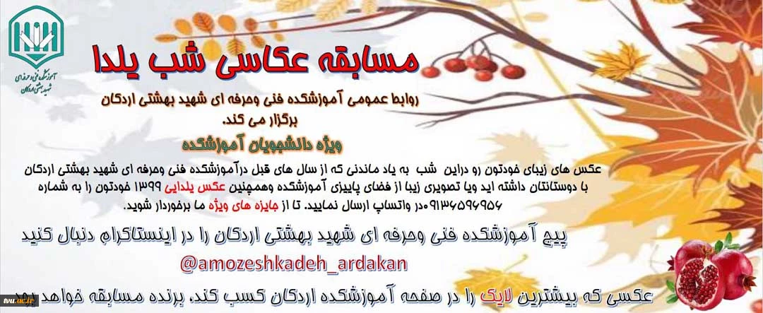 امتیاز دهید : برگزاری مسابقه شب یلدا در آموزشکده فنی وحرفه ای شهید بهشتی اردکان 2 چهارشنبه 19 آذر 1399 ساعت 11:58
