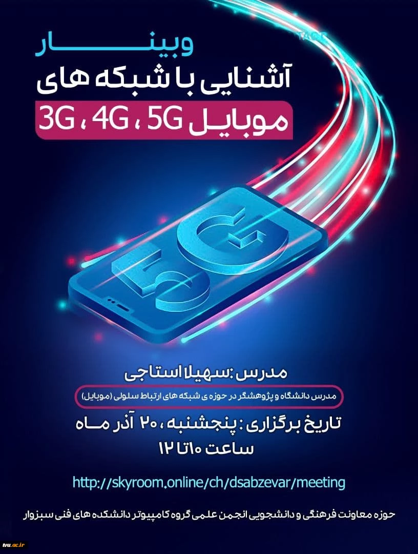 امتیاز دهید : برگزاری وبینار تخصصی با موضوع شبکه های موبایل 2G , 3G ,4G ,5G در آموزشکده های فنی و حرفه ای سبزوار 3 جمعه 21 آذر 1399 ساعت 13:20