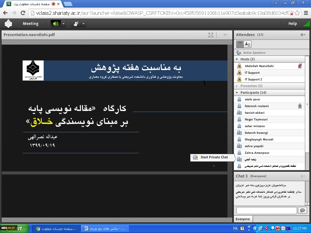 امتیاز دهید : وبینار مقاله نویسی پایه برمبنای نویسندگی خلاق به مناسبت هفته پژوهش در دانشکده شریعتی برگزار گردید 4 یکشنبه 23 آذر 1399 ساعت 13:50