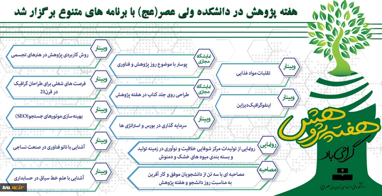 هفته پژوهش در دانشکده ولی عصر(عج) با برنامه های متنوع برگزار شد. 2