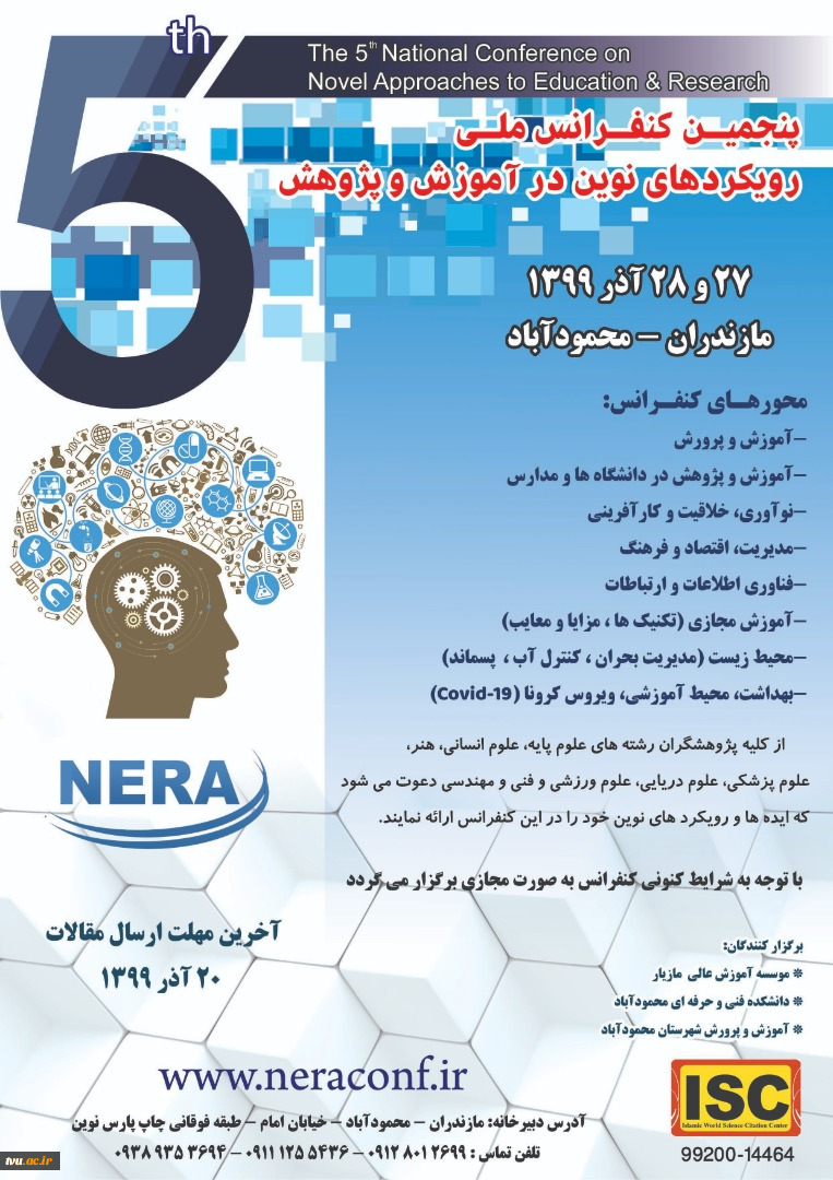 امتیاز دهید : پنجمین کنفرانس ملی رویکردهای نوین در آموزش و پژوهش به میزبانی دانشکده فنی و حرفه ای محمودآباد برگزار شد 5 شنبه 29 آذر 1399 ساعت 22:14